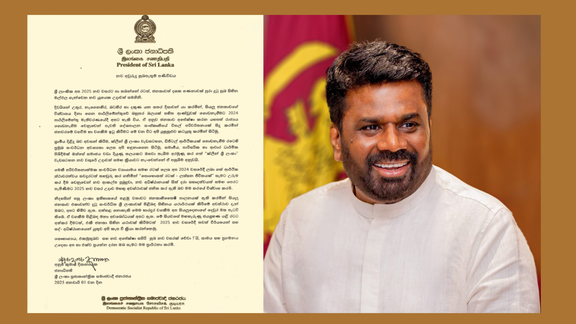 සුබ සිහින මල්ඵල ගැන්වෙන නව යුගයක උදාව වෙනුවෙන් ශ්රී ලංකා ජනපති 2025 වසරට සුබ පතයි
